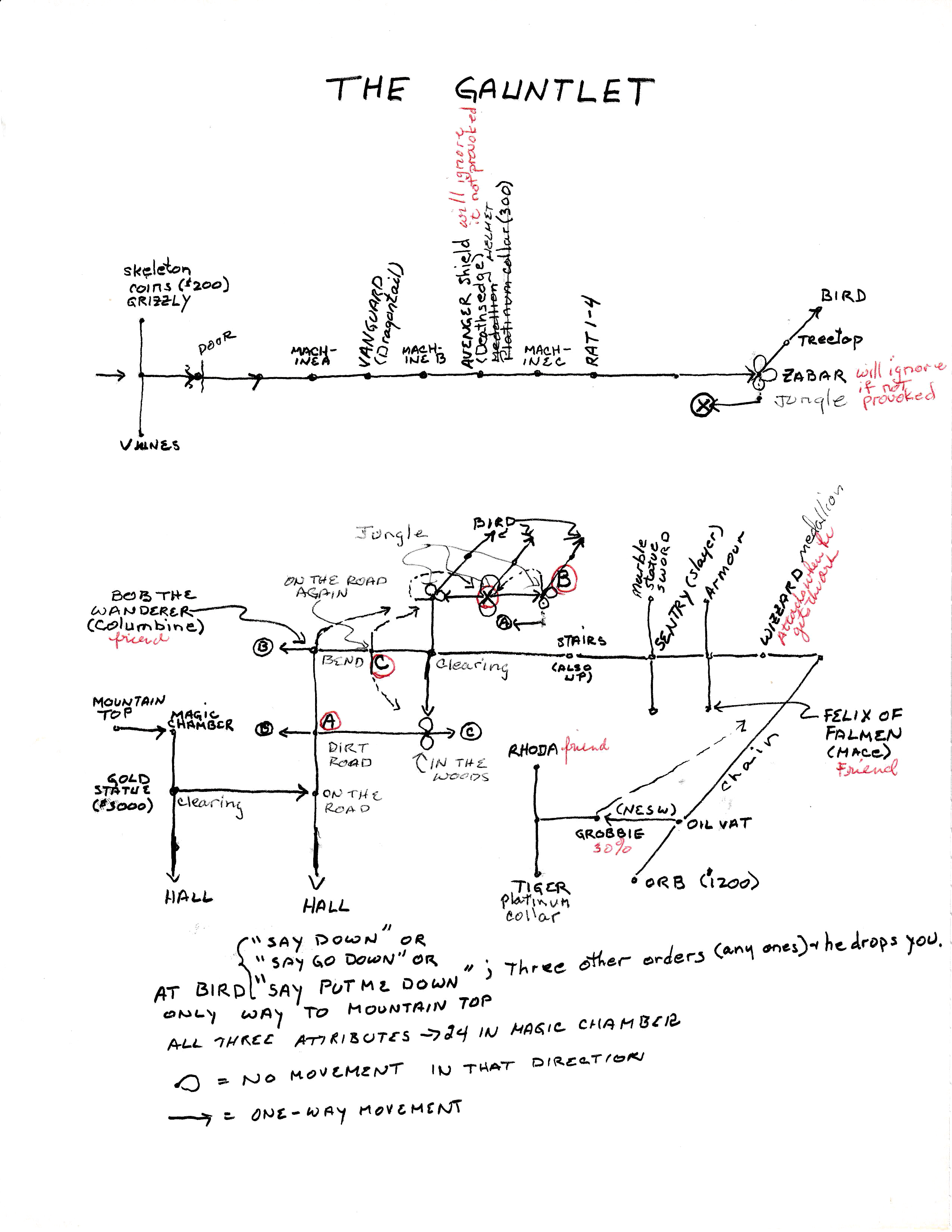 Hand-drawn map of John Nelson's Eamon adventure The Gauntlet. |