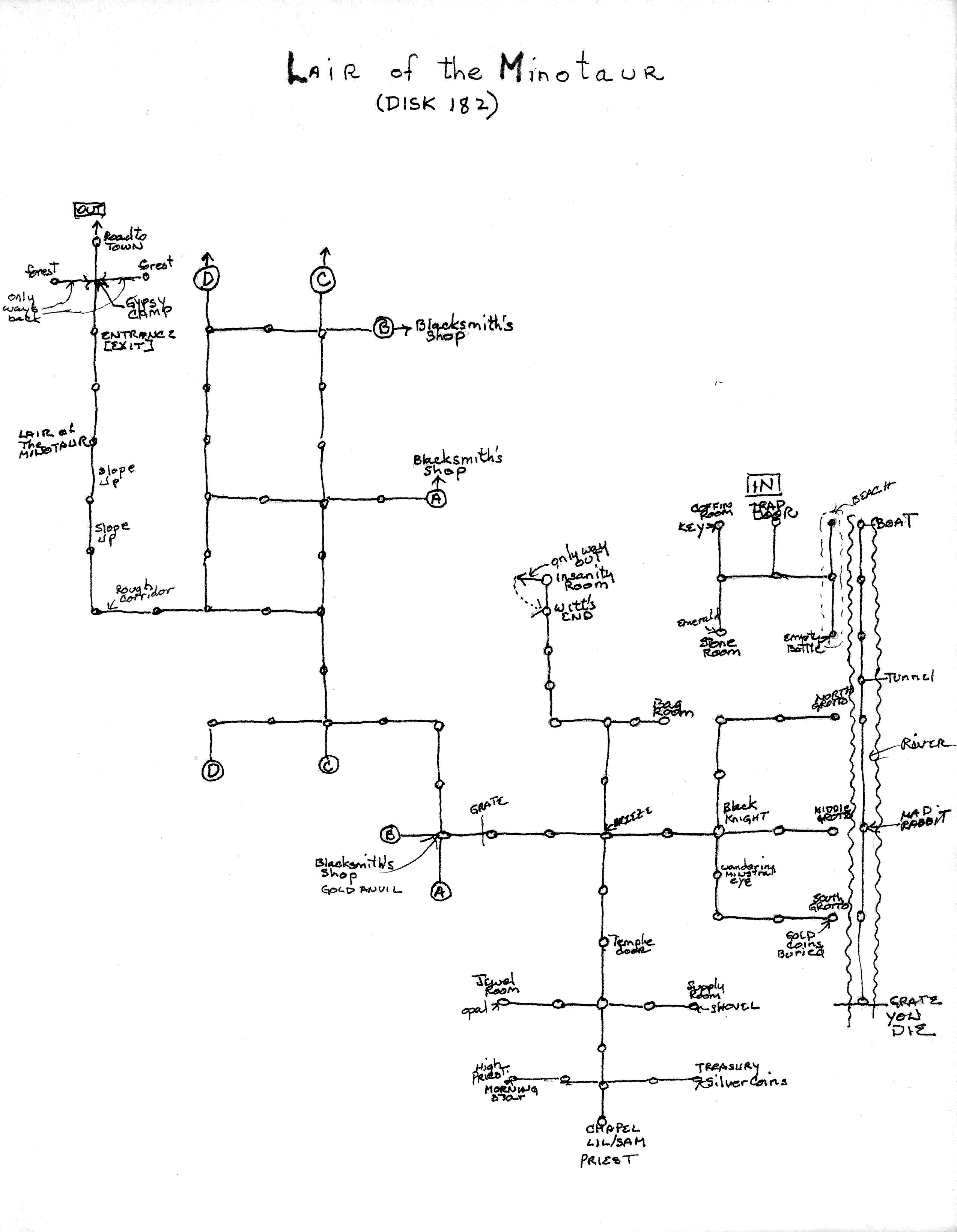 Hand-drawn map of Donald Brown's Eamon adventure The Lair of the Minotaur. |