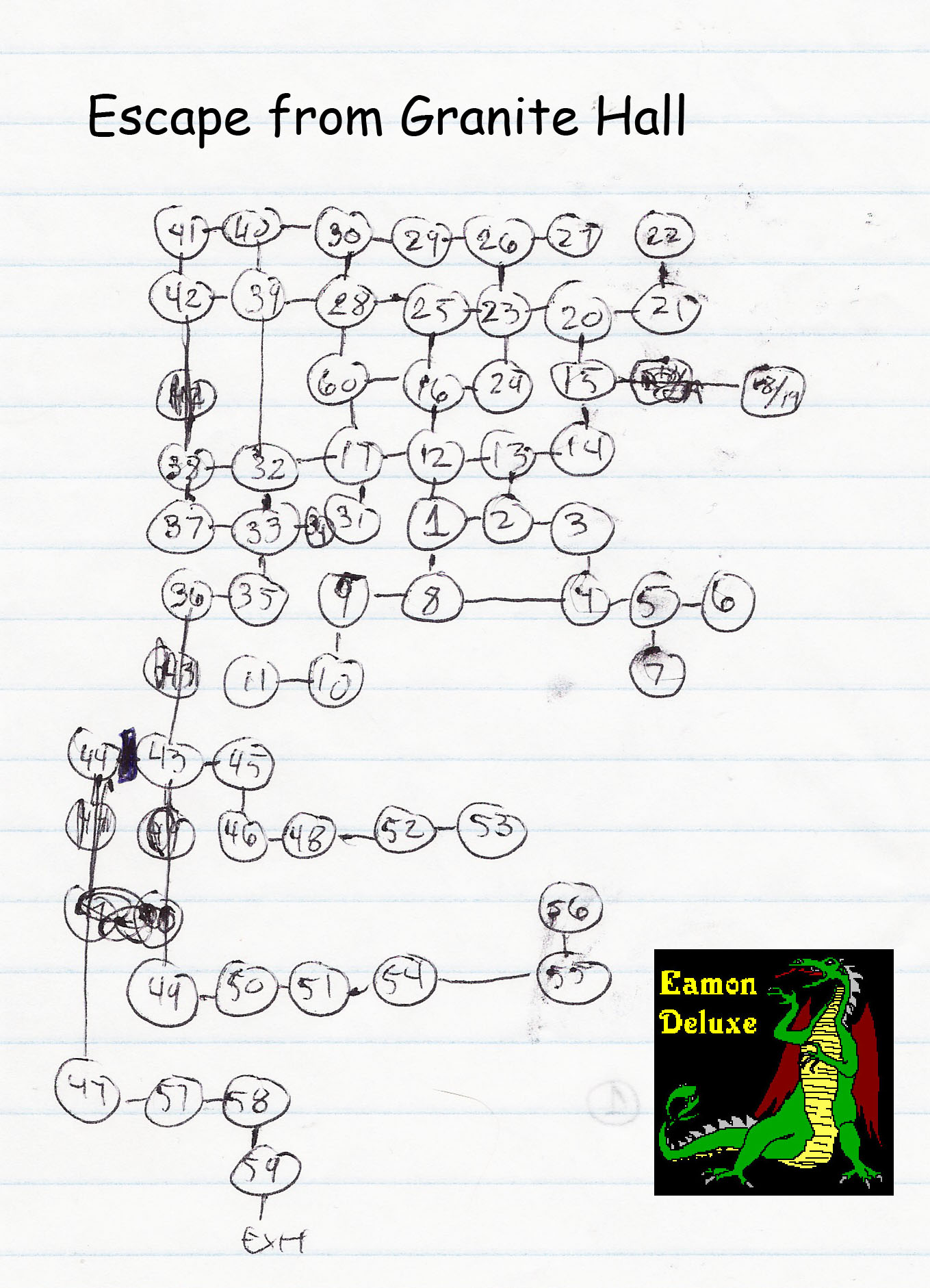 A map of Robert Parker's Eamon adventure Escape from Granite Hall, created for Eamon Deluxe. |