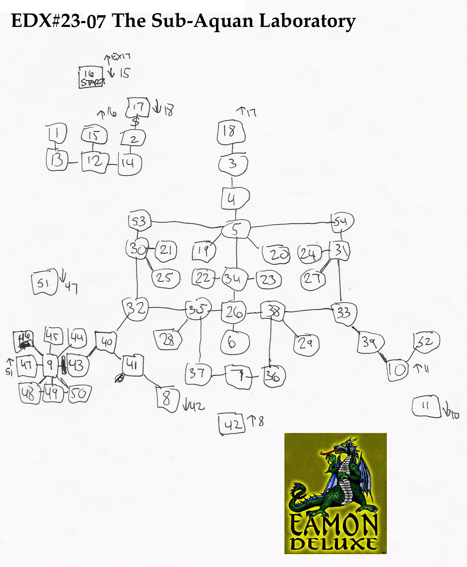 A map of Michael Penner's Eamon adventure The Sub-Aquan Laboratory, created for Eamon Deluxe. |