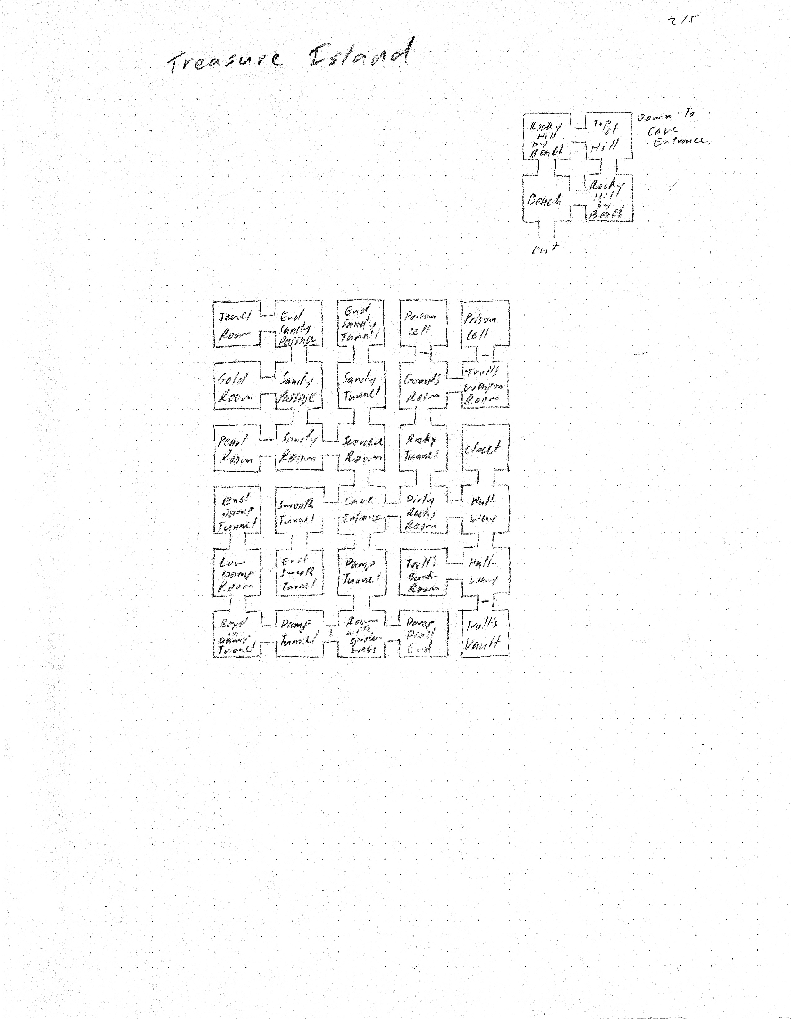A hand-drawn map of the Eamon adventure Treasure Island, created by the author. |