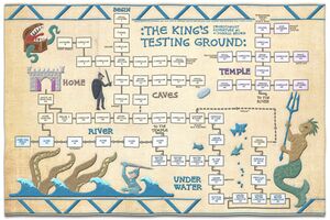 Like The Beginners Cave in Brown's original Eamon series, The King's Testing Ground is a relatively simple expedition created as a means for beginners to gain some money and experience. The introduction elaborates: